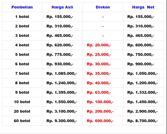 ***Pembelian ≥ 10 Botol Harganya Rp.145.000,-/Botol